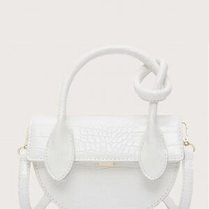 White Croc Flap Satchel Bag